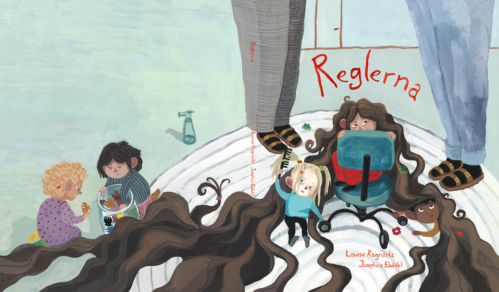 Omslag och uppslag till bilderboken "Reglerna", skriven av Louise Ragnartz, 2024.